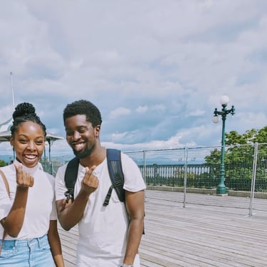 Leur toute première photo ensemble—juste tous les deux ! C’était l’été 2015, le moment où leur amitié est devenue quelque chose de bien plus fort. Cet été-là était un peu mitigé, car c’était le dernier été de Mely à Montréal avant de partir dans une autre ville pour l’université. Mais ils en ont profité à fond malgré tout—à vélo, à créer des souvenirs, et à faire semblant qu’ils n’étaient pas déjà en train de tomber amoureux l'un de l'autre !
